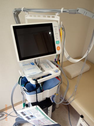 ❏ レントゲン装置、心電計、血管の老化や動脈硬化の程度を知るのに重要な脈波CAVI/ABI機器、自動体外式除細動器(AED)、尿自動分析機などを備えています。